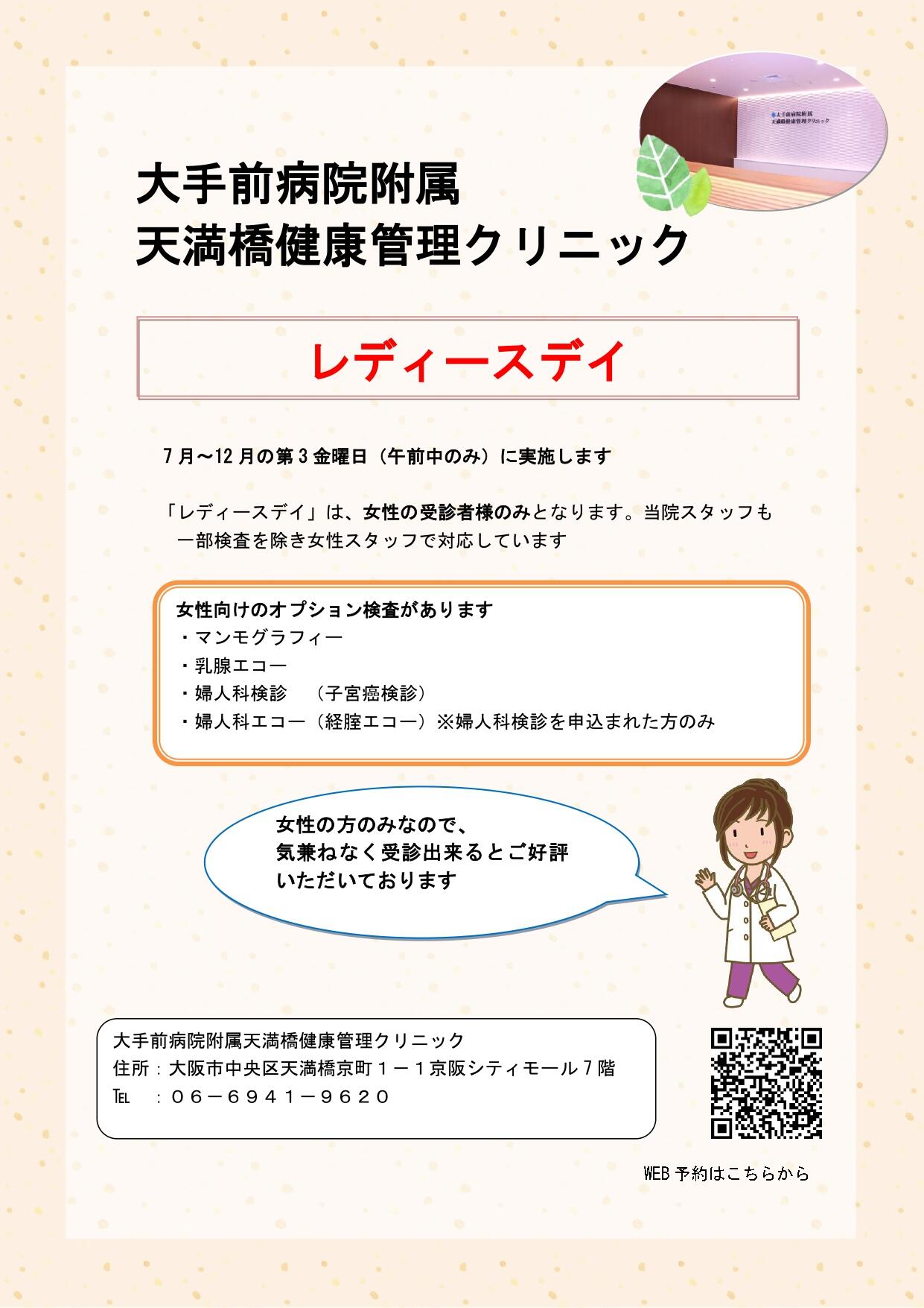 「レディースデイ」は、女性の受診者様のみとなります。一部検査を除き女性スタッフで対応しています。