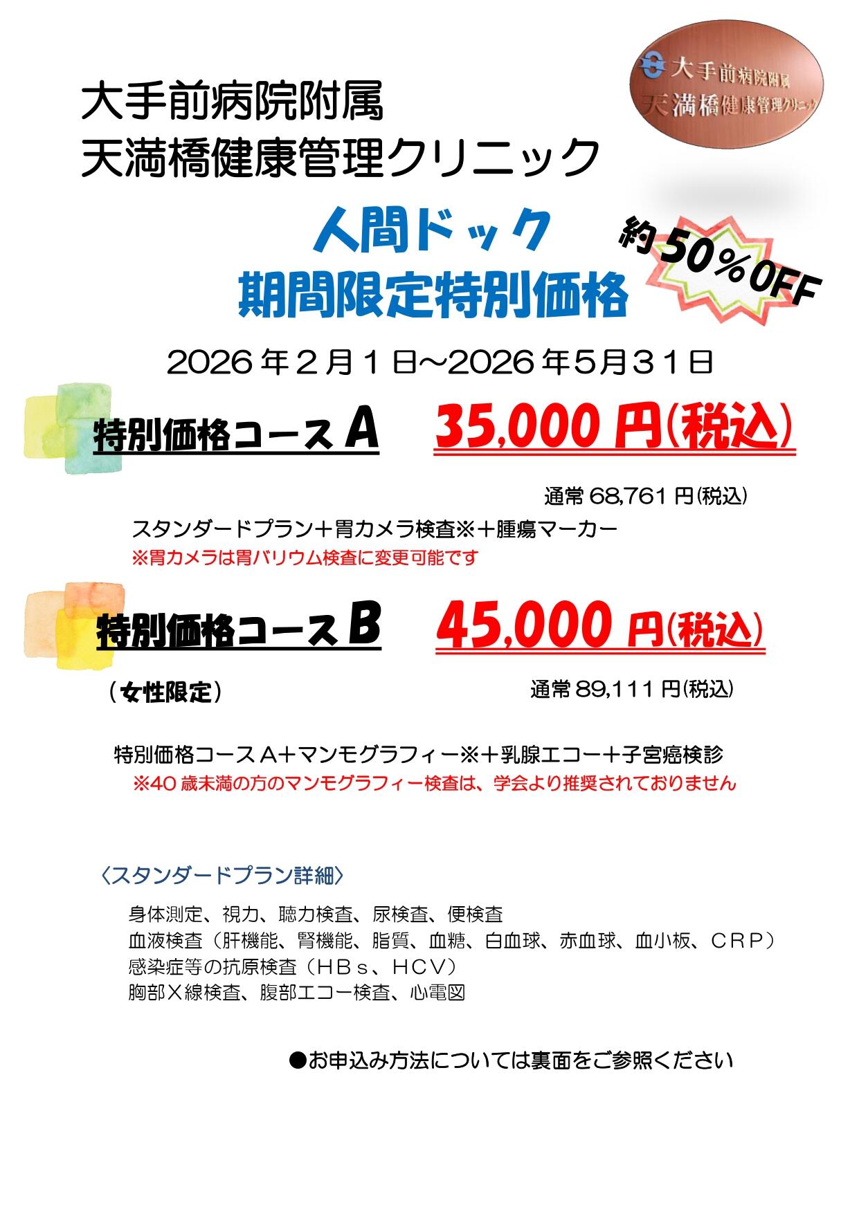 人間ドック期間限定特別価格